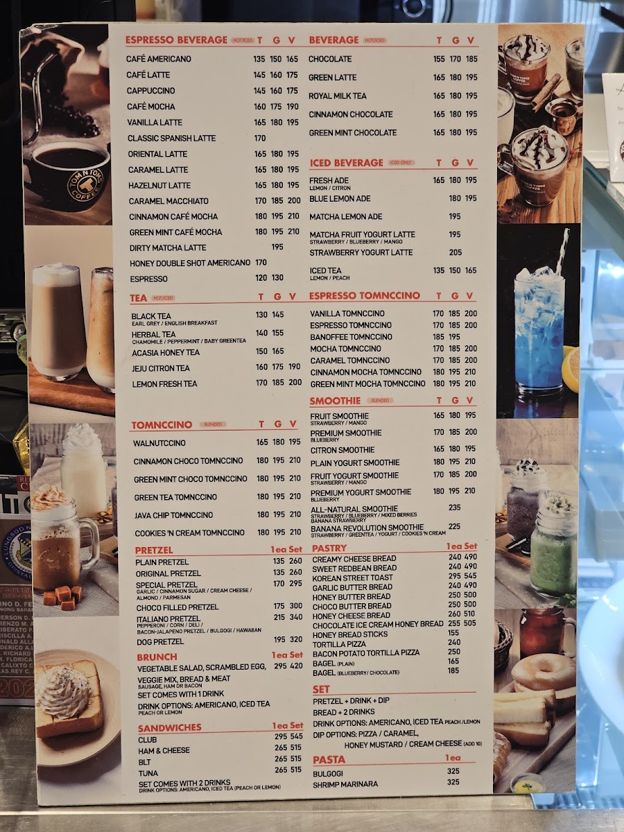 The menu at Tom N Toms Coffee - Dagupan offers a variety of food and beverage options suitable for different times of the day, including breakfast, coffee breaks, and light meals. The selection is organized into distinct categories that cater to diverse tastes and preferences.